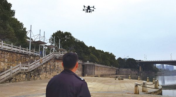 執(zhí)法人員控制巡檢無人機(jī)檢查沿河的非法捕魚活動。“請注意!一人多桿,您已違反禁漁規(guī)定,請您立即停止違規(guī)垂釣行為!”12月1日下午,一架無人機(jī)在河濱起...